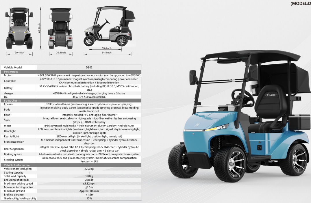 AI после электрической гольф -тележки может использоваться в различных местах, таких как поля для гольфа, футбольные поля, курорты или в вашем имуществе, ферме и т. Д. Вы можете использовать его для вождения, охоты и перевозки товаров.